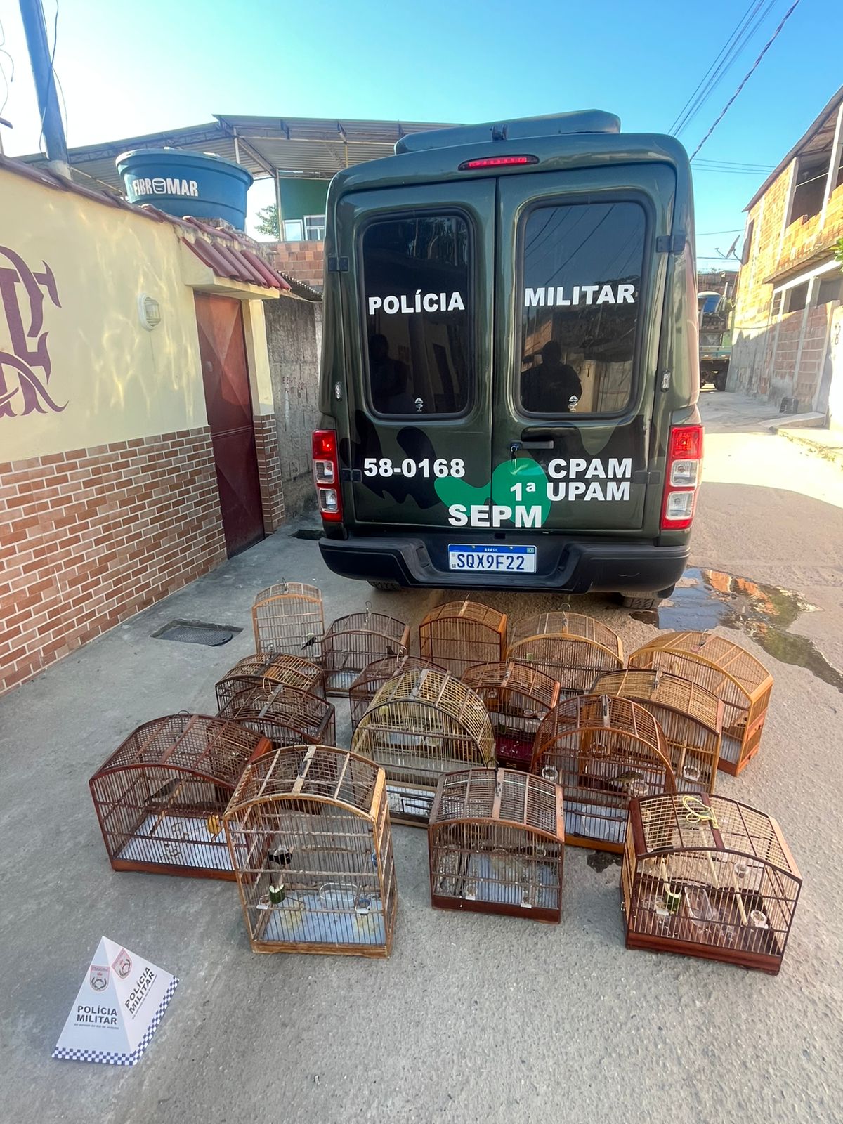 Ainda nesta quarta-feira (07), policiais militares lotados na Unidade de Policiamento Ambiental do Parque Estadual da Pedra Branca, em averiguação à denúncia do programa Linha Verde, do Disque Denúncia (0300 253 1177) apreenderam 16 pássaros da fauna silvestre brasileira em Japeri.