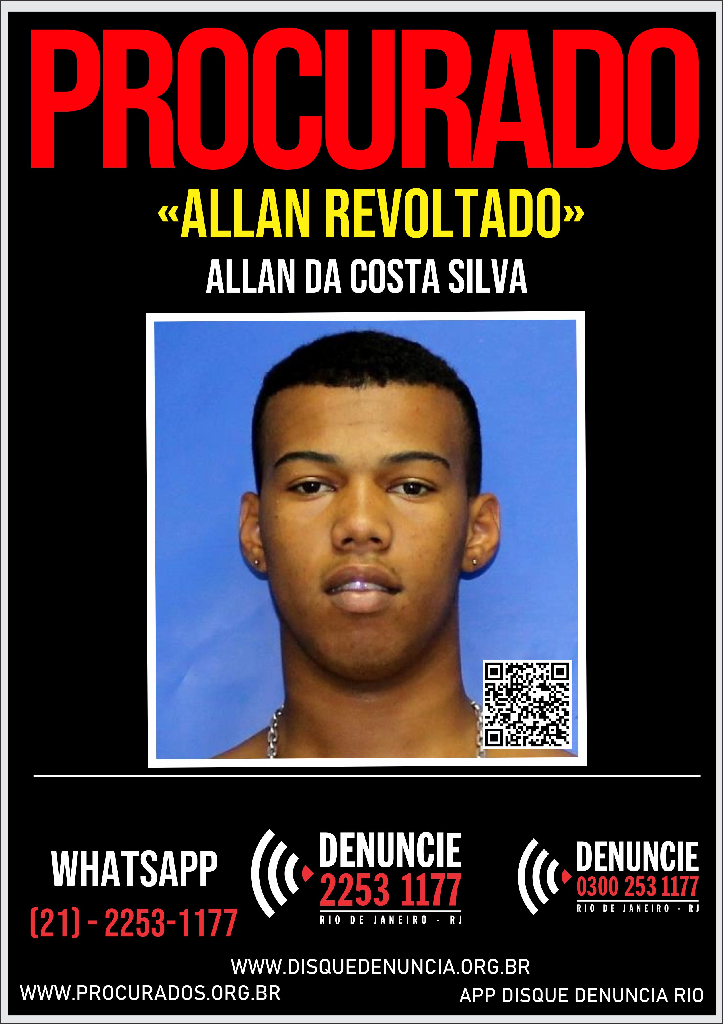 Allan da Costa Silva, o Allan Revoltado, é integrante de um grupo de roubos de cargas e veículos na região de Pilares e Piedade, Zona Norte do Rio. Ele pertence ao tráfico de drogas que age no Morro do Urubu. Ele é procurado pelo crime de Homicídio Qualificado (Art. 121, § 2º - Cp).