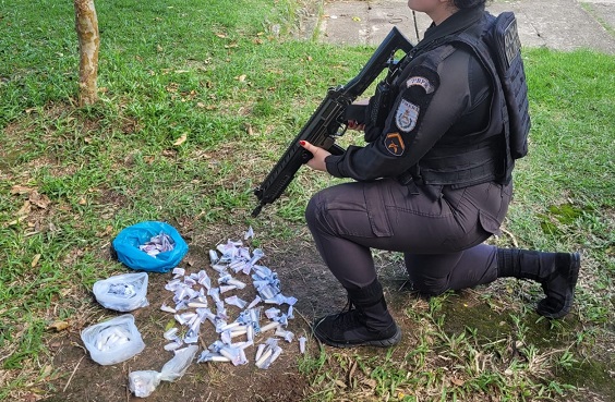 Policiais militares, lotados no 7ºBPM (São Gonçalo) estiveram no último dia 07, em um determinado ponto do bairro Laranjal, que fica no município de São Gonçalo, para averiguar informações repassadas pelo Disque Denúncia sobre ações de criminosos na região. Na chegada ao exato local relatado na denúncia, tiveram as atenções voltadas para quatro indivíduos em atitude suspeita, que, ao perceberem que seriam abordados, empreenderam em fuga deixando para trás uma moto e uma mochila contendo 81 pinos de cocaína, 46 trouxinhas de maconha, 58 embalagens de cheirinho da loló e 27 pedras de crack.