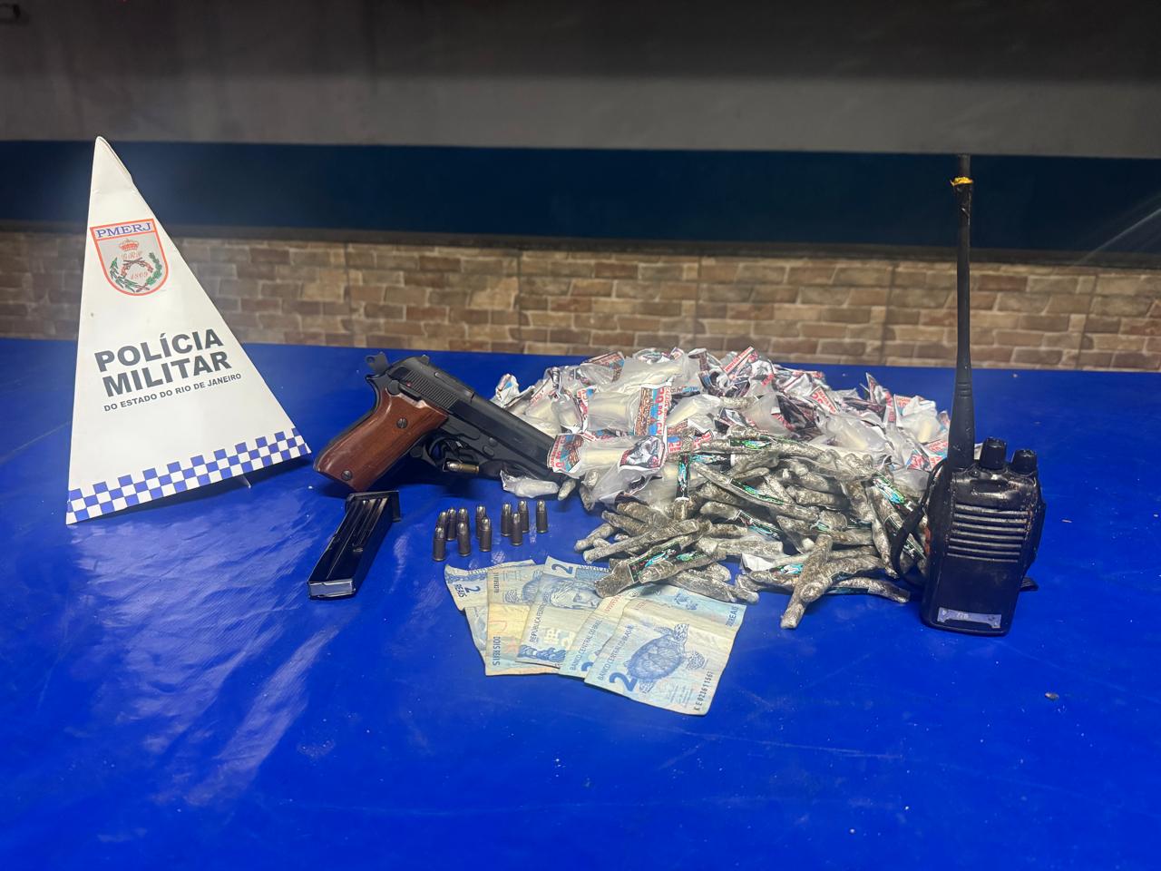 Policiais do 24º BPM, baseados em informações do Disque Denúncia, estiveram no dia 30 de maio, na Avenida Brisa Mar, no local conhecido como Cação, no bairro Brisa Mar, em Itaguaí, e se depararam com criminosos armados. Houve troca de tiros e um dos criminosos foi atingido e morreu. Com ele, os policiais encontraram uma pistola Taurus PT 57 Cal. 7,65 mm com dois carregadores; 24 munições; 220 pinos de Cocaína; 118 trouxinhas de Maconha; um radio transmissor e R$ 10,00.